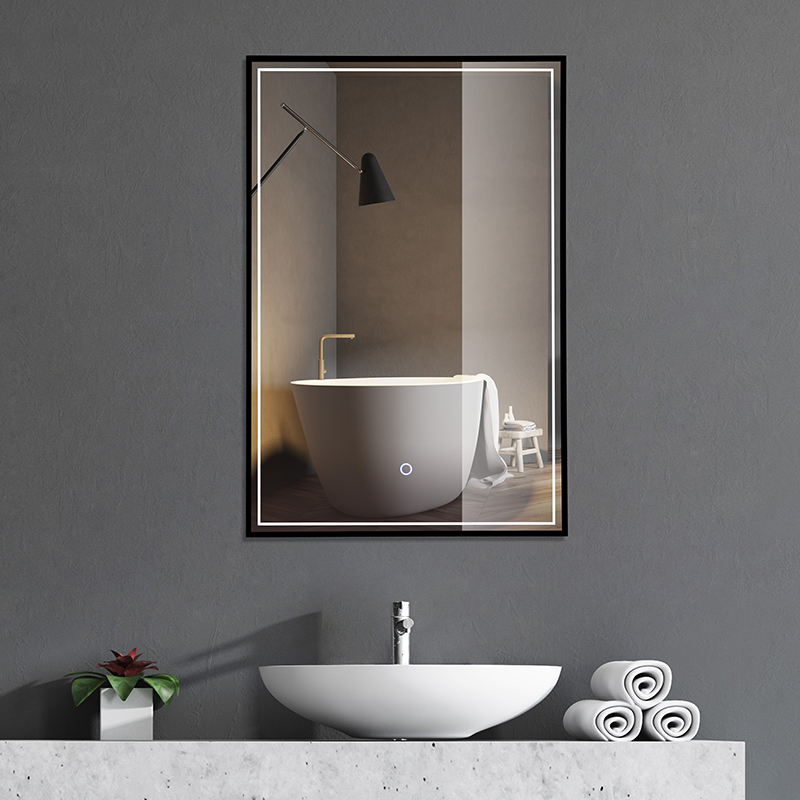 Em termosformaNo entanto, o estilo de banheiro não é mais limitado ao estilo quadrado rígido.O espelho inteligente do banheiro com uma moldura simples na imagem tem linhas bonitas, que se integra perfeitamente com o banheiro minimalista moderno e acrescenta um toque de delicadeza ao espaço.